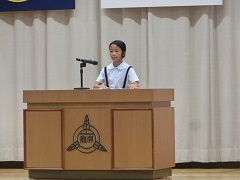 3年生の,伊藤 律さんは,「国語の報告する文章を書くこと」と「漢字と日記をていねいに書くこと」を頑張ったと振り返っていました。「夏休みには,1学期に習ったことの復習を頑張る。」と夏休みの目標も発表し,夏休みを「充実したものにしよう」という意思が強く感じられる児童代表の言葉でした。